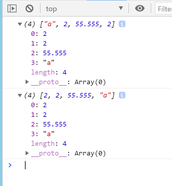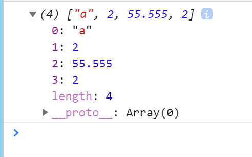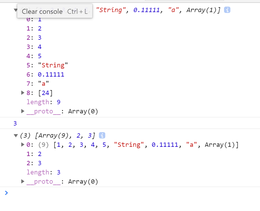 let arr = [1, 2, 3, 4, 5, "String", 0.11111, 'a', [24]];