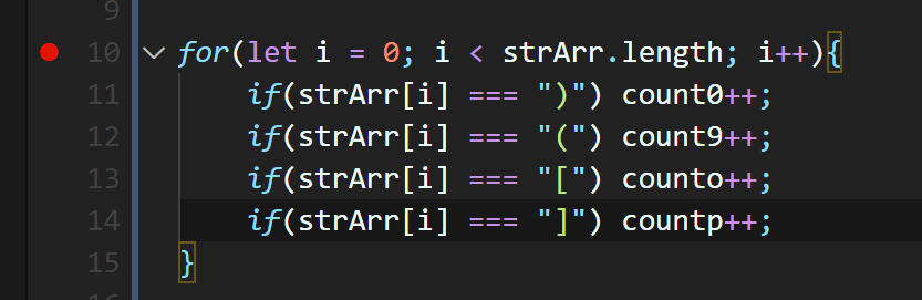 코드 줄 왼쪽에 마우스를 대면 빨간 원이 보이는데 그것을 클릭하면 break point가 설정된다.