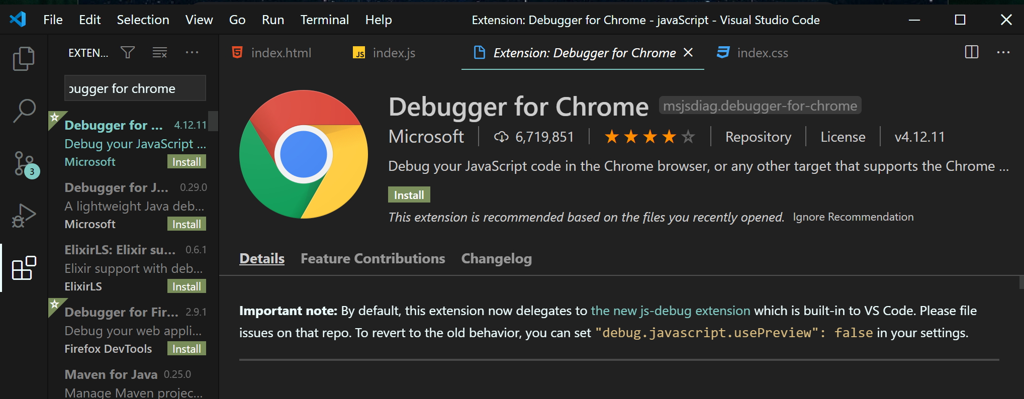 VScode에서는 JS를 Debugging하도록 도와주는 확장프로그램이 있다.