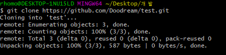 Clone 주소가 적혀 있다. 해당 주소를 복사해서 다음과 같이 git bash에 명령어를 넣으면