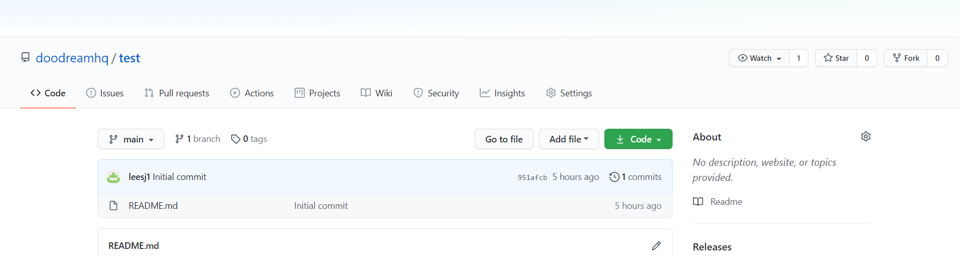단, 해당 레포지토리가 비어있으면 안된다. 어떤 파일이라도 있다면 fork가 된다.