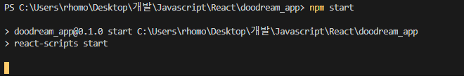 여기에 npm start 명령어로 react앱을 실행시켜 보자.