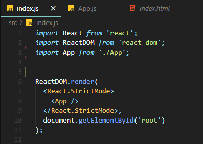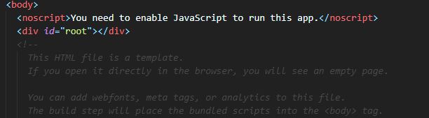 보다 시피 ReactDOM이 root 아이디를 가져와서 동작하기 때문이다.