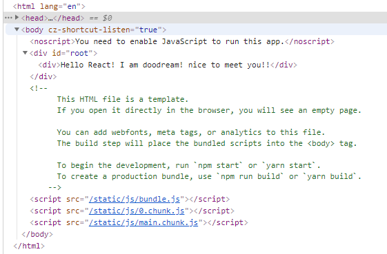 즉, react는 빈 웹페이지에서 돌아가는 즉시 필요한 모든 요소들을 구성해낸다.