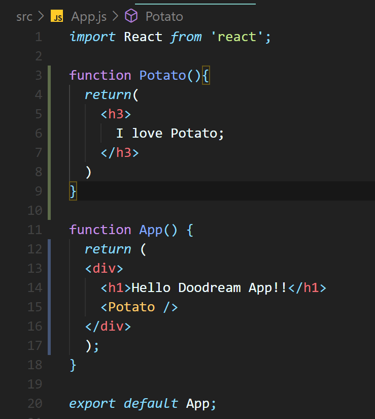 같은 디렉토리 안에 있는 ./Potato JS파일을 import 해주고 Potato 컴포넌트를 활용하면된다.