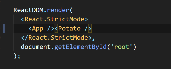 ReactDOM은 하나의 컴포넌트만 랜더링 하기 때문이다. 따라서 Potato 컴포넌트는