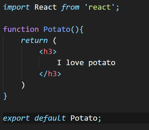 export default Potato;를 통해서 함수를 JS의 모듈에 추가 시키는 과정이다.