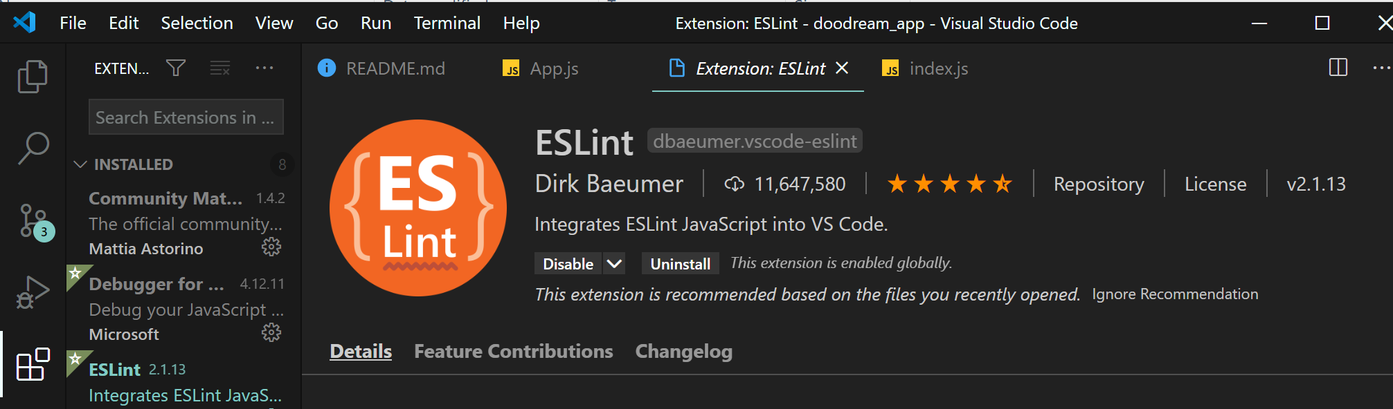 ESLint는 다양한 버전의 자바스크립트 문법을 잡아주는 확장 프로그램이다.
