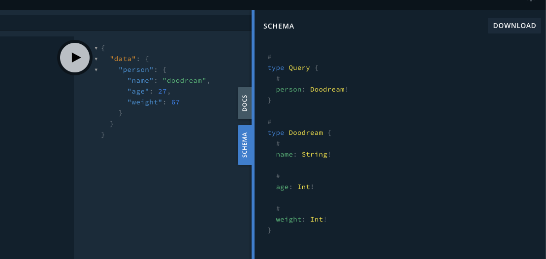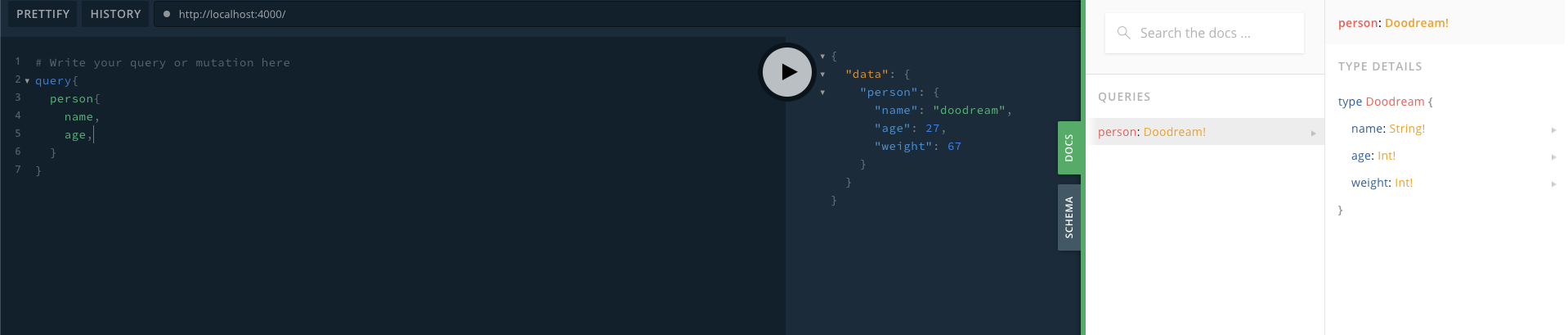 쿼리에도 person이라는 쿼리의 데이터 타입을 선언했다. 이제 playground를 가보면