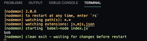 "start": "nodemon --exec babel-node index.js"