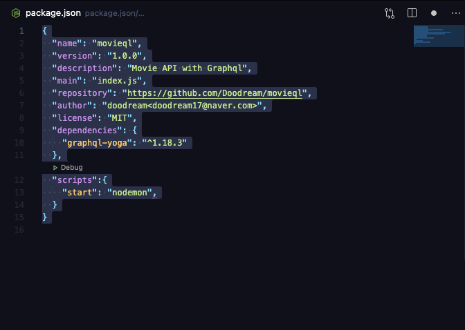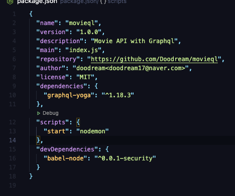 이후 package.json을 다음과 같이 수정한다.