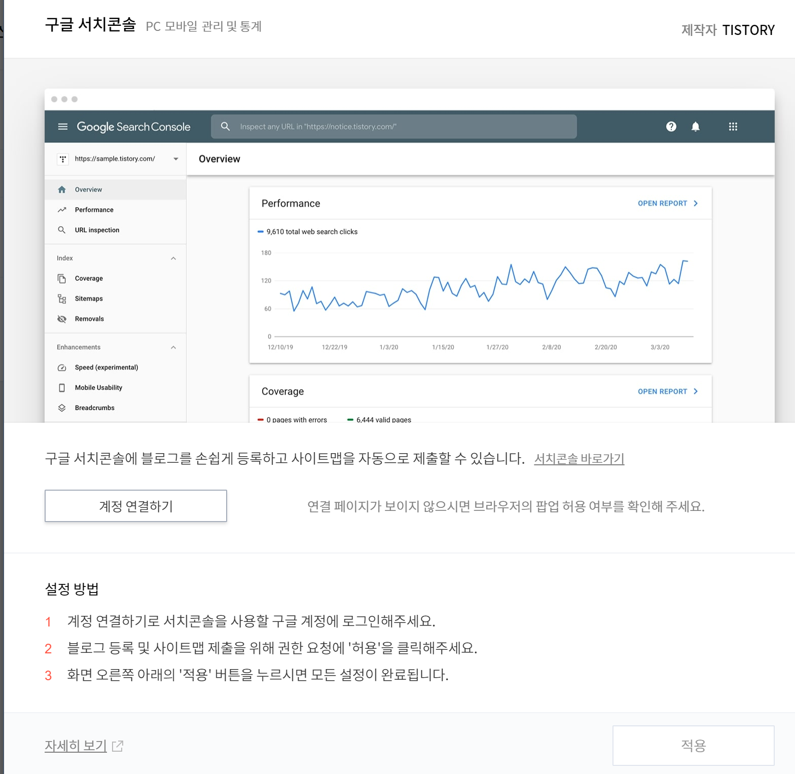 위사이트로 들어가면 티스토리의 각종 플러그인 이있는데요 그중 구글 서치콘솔 을 선택하면