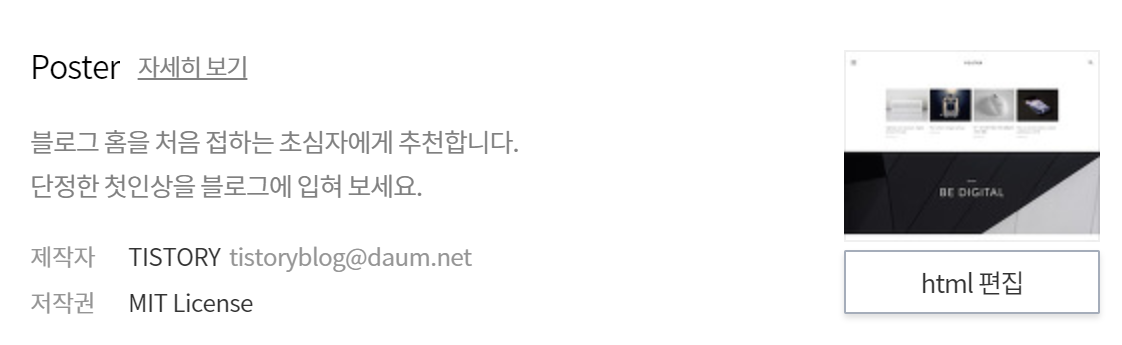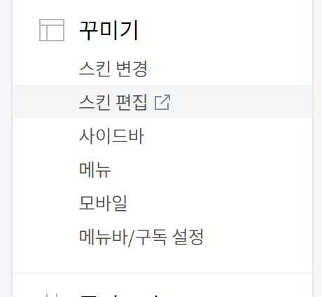 티스토리 관리자 -> 꾸미기 -> 스킨편집