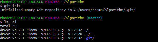 생성하면 Algorithm 디렉토리 안에 .git이라는 repository가 생긴다.