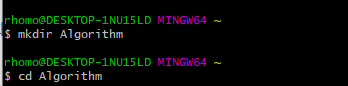 cd 명령어를 이용해 Algorithm 디렉토리 안으로 들어가 git 의 repository를 생성해보자