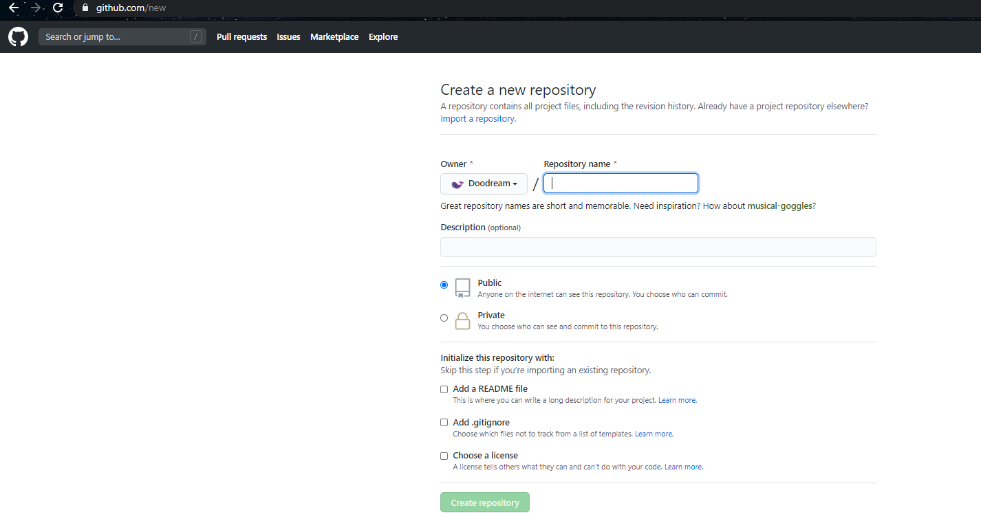 먼저 github 홈페이지에서 레포지토리를 생성한다.