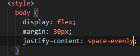- space-evenly : 빈 공간을 같은 크기로 나누어서 배치(고르게 배치) 등