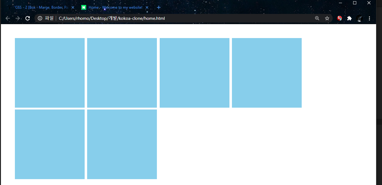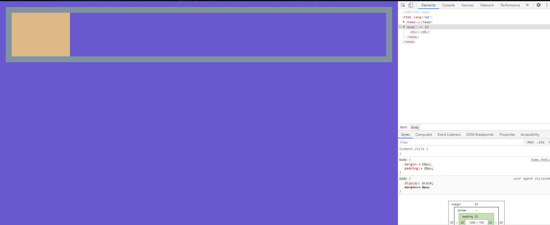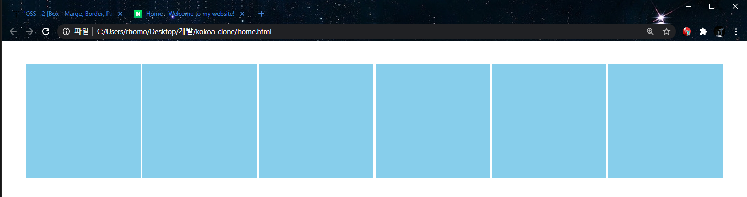 - 위 그림과 다르게 padding값(20px)가 잘 들어갔다.