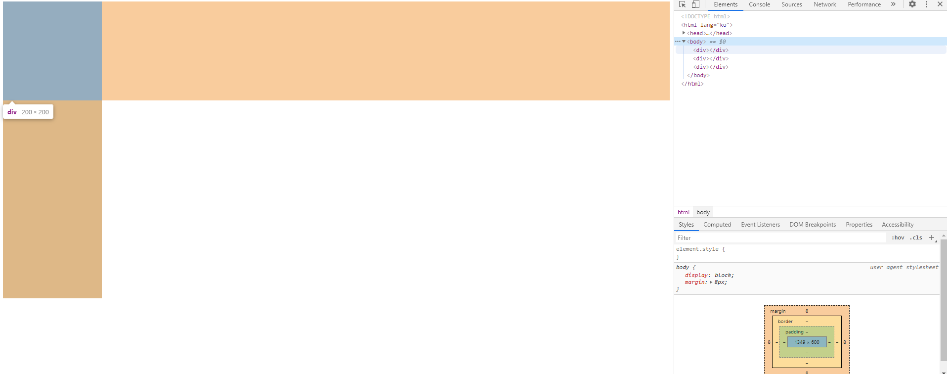 - 각각의 div 들은 여전히 block요소이다.
