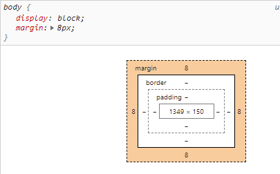 따라서 기본적으로 display와 maring이라는 옵션은 block과 8px라는 것으로 위와 같이 표시된 영역이