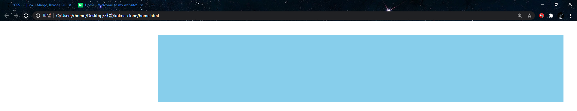 - default값에서 두요소 사이에 위와 같이 빈공간이 있다. (우리는 이러한 공간을 만든적이 없다. margin이 아니다.)