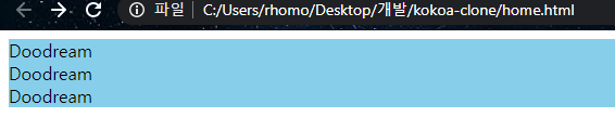 - div 각각을 구분하기 위해서 각각 id를 만들고 css에서 색깔을 입히고 싶다.