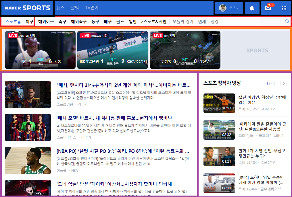 위 웹사이트를 보면 다양한 구분으로 블럭가 나뉘어 진것을 알수 있다. 이것은 실제로
