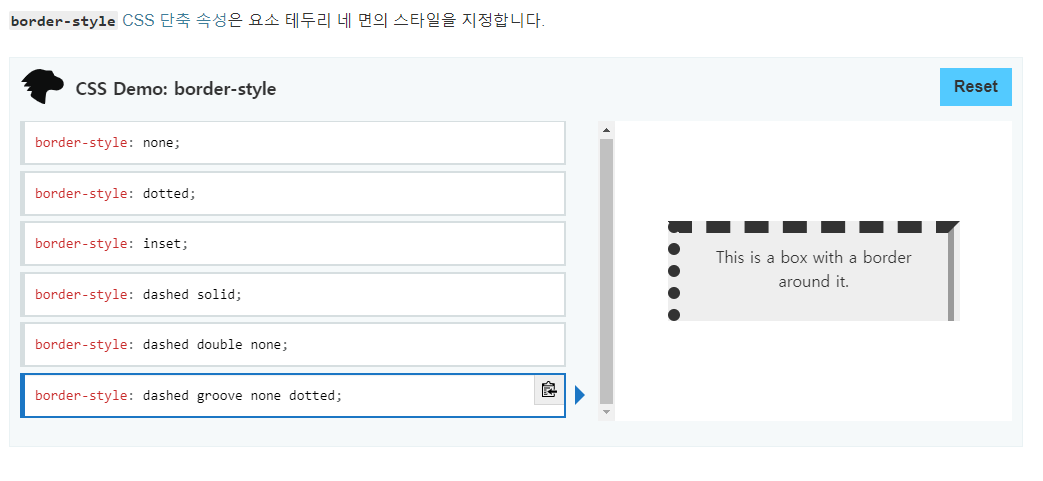 - border의 속성 값은 순서 없이 적어도 된다. 다만 border-sytle은 다르다. (mdn 검색)