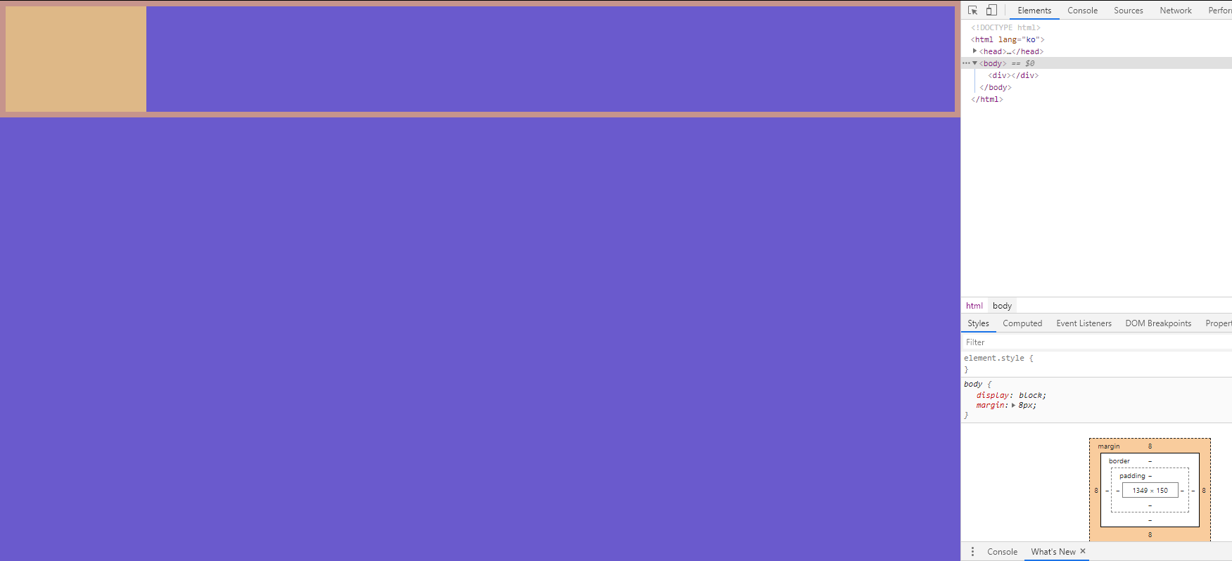 3가지 특성을 알아보기 위해서 html 파일전체의 배경색과 div의 배경색을 달리 설정해보자