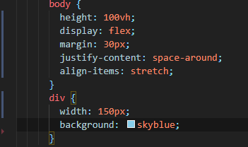 - stretch는 늘려 놓는 값이기 때문에 부모의 총크기를 정해놓고 (100vh) 자식의 높이를 없애야한다.