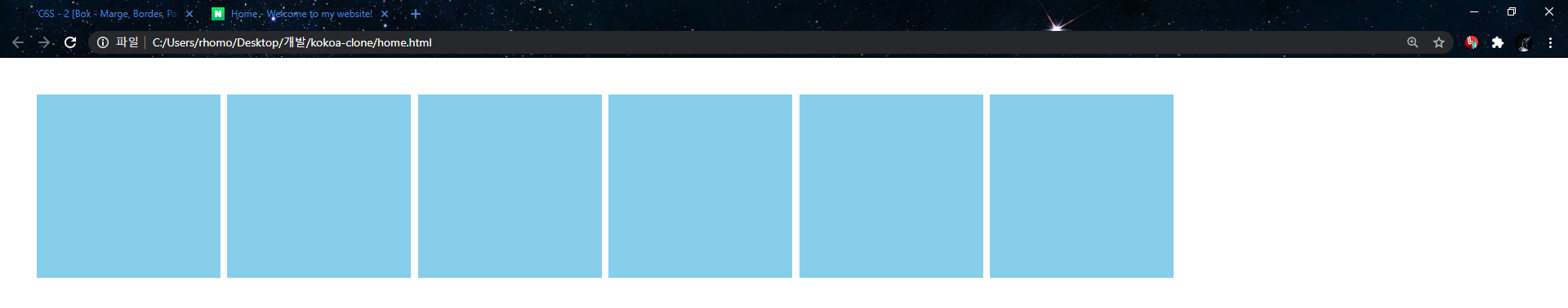- default값에서 두요소 사이에 위와 같이 빈공간이 있다. (우리는 이러한 공간을 만든적이 없다. margin이 아니다.)