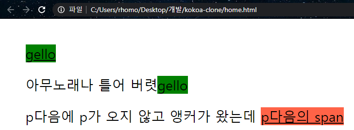 - 하지만 p다음에 span이 오지 않고 다른 tag가 오게되면 효과는 사라진다.