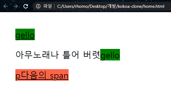 - 우와 같이 '>'표시는 부모의 직접적으로 아래 있는 span만을 특정한다.