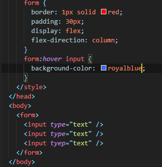 - 위와같이 form에 마우스를 올려두고 input에 focus된 상태에서 변형을 일으켰다.