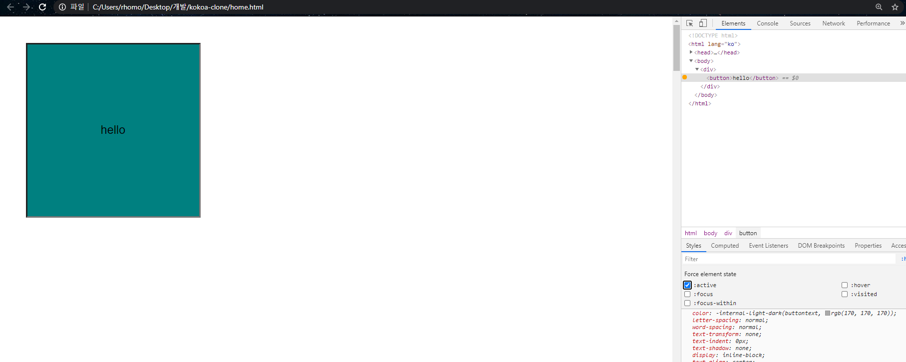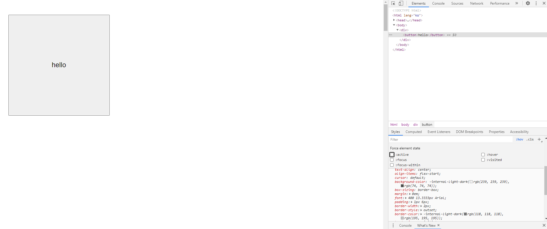 - 위사항은 button이 active 상태일 때를 꾸민 코드이다.
