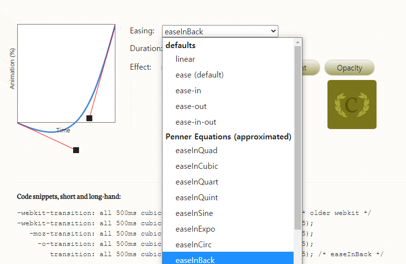 cubic-bezier 이부분을 복사해서 ease-in function부분에 넣자