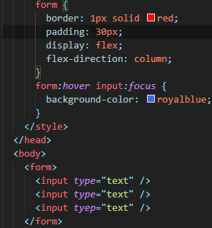 - 위와같이 form에 마우스를 올려두고 input에 focus된 상태에서 변형을 일으켰다.