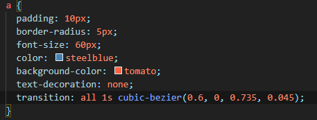 'trandition: background-color 5s ease-in-out, color 4s ease-out;'