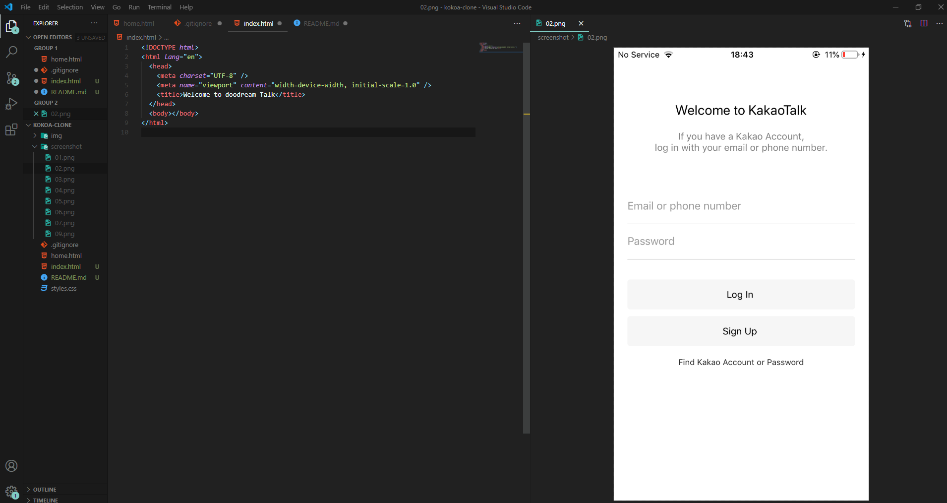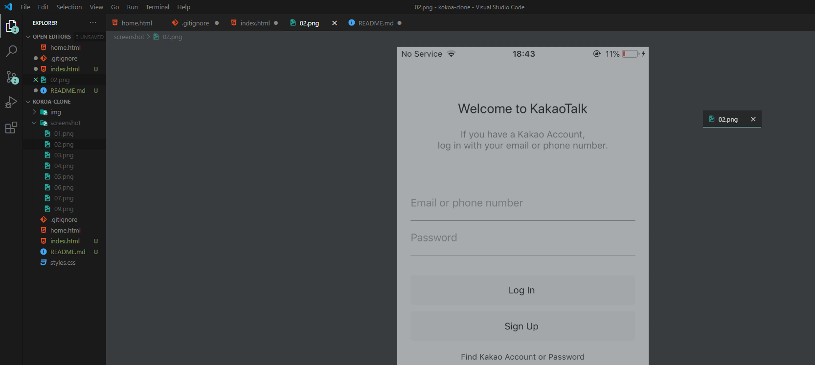 이렇게 이미지와 코드(코드와 코드) 탭 두개를 동시에 보기 힘들다면 한개의 탭을 우로 끌어와서 놓으면