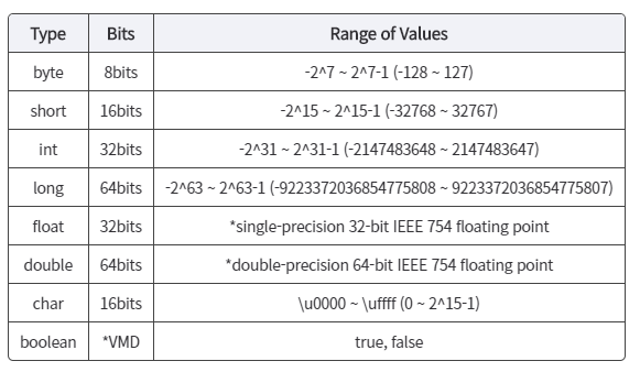 위 자료들을 참고하여 java 자료형의 범위를 알자