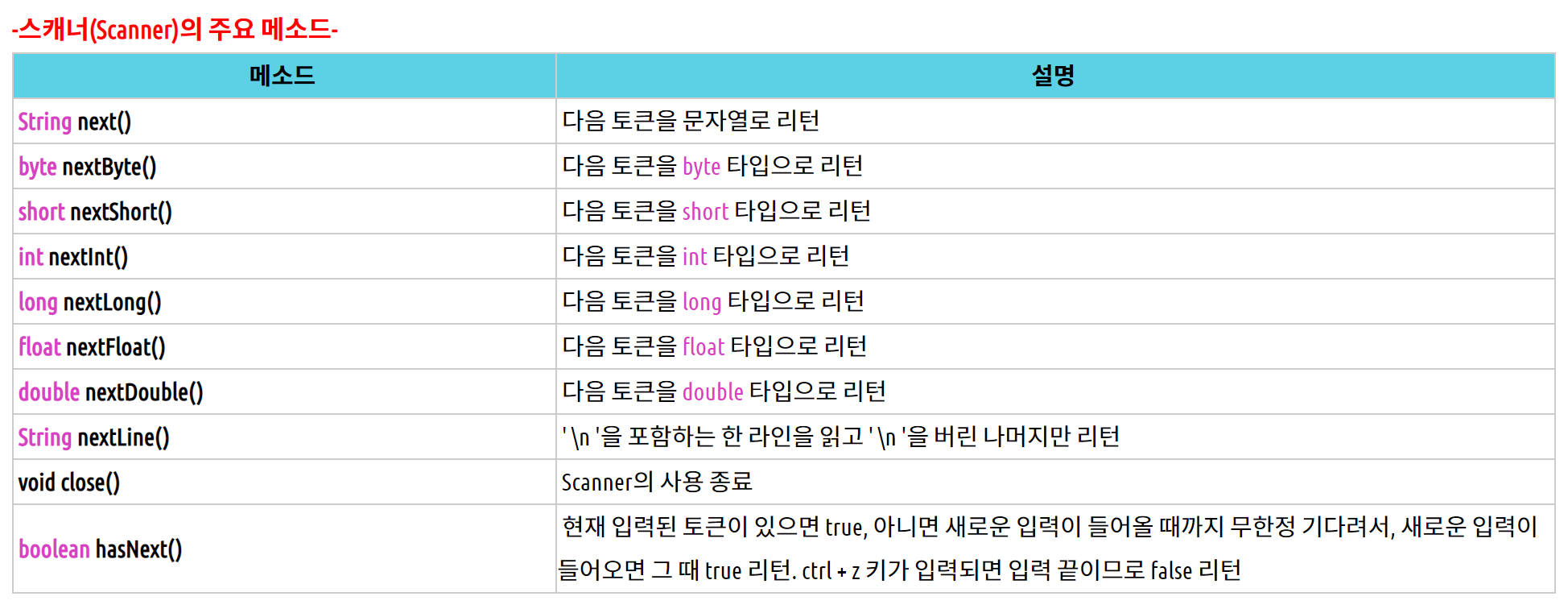 여기서 Scanner 객체의 메소드들이 중요하다.